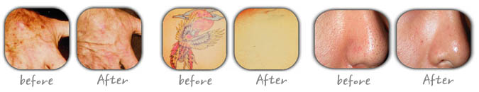 可去除像是刺青、紋眉、雀斑、曬斑、胎記、蒙古斑也可縮小毛孔、改善膚色不均、改善痘疤治療後要加強保濕和防曬,使用防曬係數SPF30以上之防曬產品,更完整的隔離紫外線對皮膚的傷害。